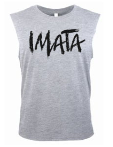 Unisex Heather Gray Muscle Tank. Black IMATA writing on front and small black logo on back.